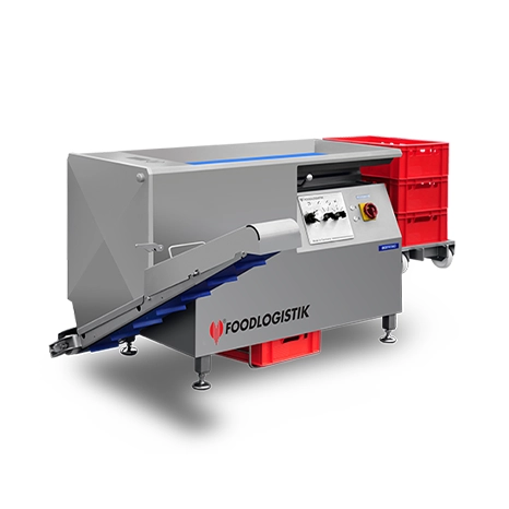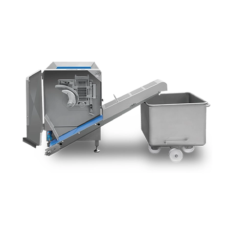 Отвеждане на нарязания продукт чрез елеватор в 200л. количка