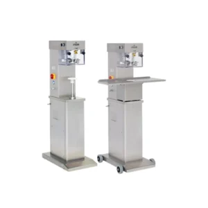 Усъвършенствана, полуавтоматична машина на STILLER за затваряне на кръгли консерви от неръждаема стомана, алуминий и композитни/хартиени материали.